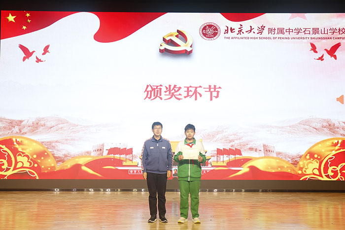 最后进行了颁奖仪式。在2025年石景山区教委、卫健委联合举办的“关爱健康,共促成长”,中小学生健康主题创意作品大赛活动中,我校初二6班王成玮同学,手绘作品”远离烟草珍爱生命“荣获区级三等奖!