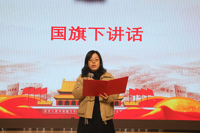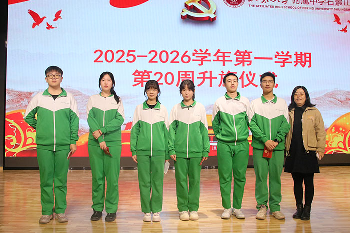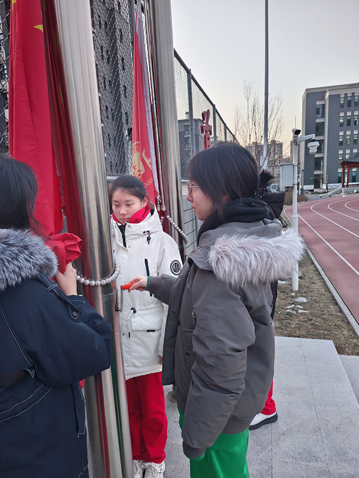 2026年1月12日,举行第20周升旗仪式。本次仪式由张宇盛、杨贻然同学主持,高二四班赵芊羽同学担任升旗手,王钺洋、马源、赵竟伊、孔梦然四位同学与高二四班班主任白洁老师,围绕“诚信考试”主题带来层层深入的国旗下分享,为期末备考阶段的学子们献上一堂生动的道德教育课。