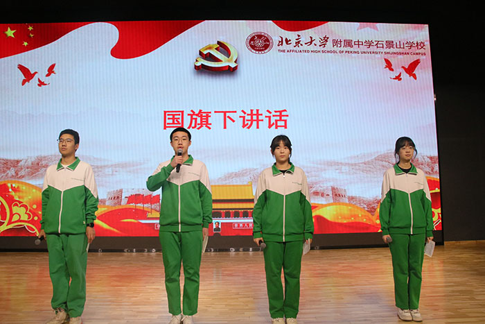 伴随着激昂的出旗曲,升旗仪式正式拉开帷幕。本次升旗手是来自高二四班的赵芊羽,在注目下,国旗升起,师生们肃立行注目礼,嘹亮的国歌与校歌在校园中回荡,彰显着附中学子昂扬向上的精神风貌。