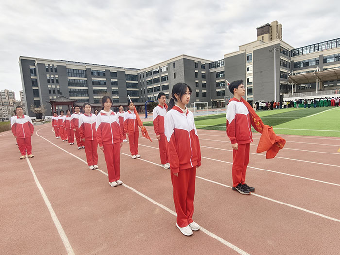 之后,初一(4)班的班主任贾可悦老师以《赓续红色薪火,远足淬炼信仰》为题,在国旗下讲话中结合清明节气与长征胜利九十周年,缅怀革命英烈,讲述了史阜民、陈祥榕等英烈的感人事迹,我们应深知如今的安稳生活来之不易。同时倡议同学们以远足为契机,磨炼意志、团结互助,心怀敬畏祭奠英魂,将英烈精神融入日常学习生活,厚植家国情怀,传承红色基因,以实际行动争做新时代好少年。