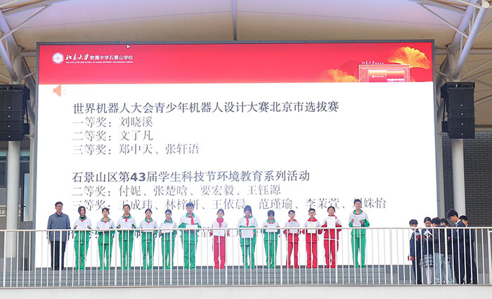 英烈精神的传承,既体现在家国情怀的厚植,也体现在综合素养的提升。我校学子也以实际行动诠释着新时代少年的奋进与担当。近期,我校学子在多项市级、区级赛事中屡创佳绩,收获满满!在2026年世界机器人大会青少年机器人设计大赛北京市选拔赛、石景山区第43届学生科技节环境教育系列活动中,我校学生凭借出色表现,斩获比赛一、二、三等奖若干。累累硕果彰显了我校五育融合的育人成效,充分展现了附石少年全面发展、勇于挑战的良好风貌。