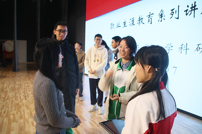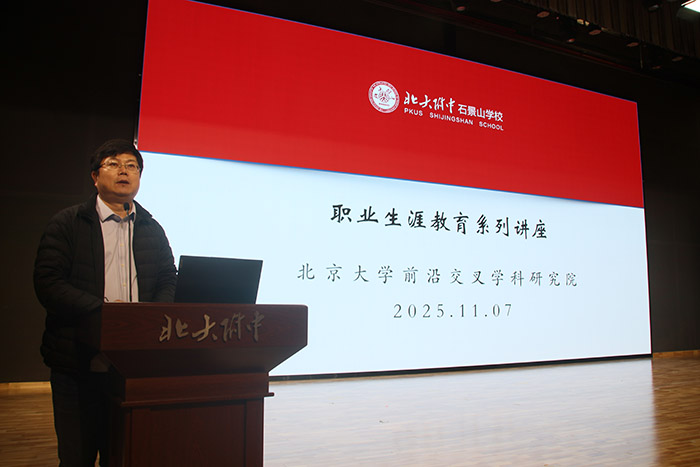 冬日暖阳,书香满园。2025年11月7日下午,北京大学前沿交叉学科研究院的四位优秀博士生受邀走进北大附中石景山学校,以"交叉学科,融汇梦想"为主题,为高零高一高二的同学们带来了一场精彩纷呈的职业生涯规划系列分享。本次活动由徐文博副校长亲自主持,高零高一高二的年级组长和班主任们全程陪伴,旨在搭建起高校与中学的交流平台,拓展学生的视野,激发探索求学精神,启发学生进行职业生涯方面的长远思考与规划。