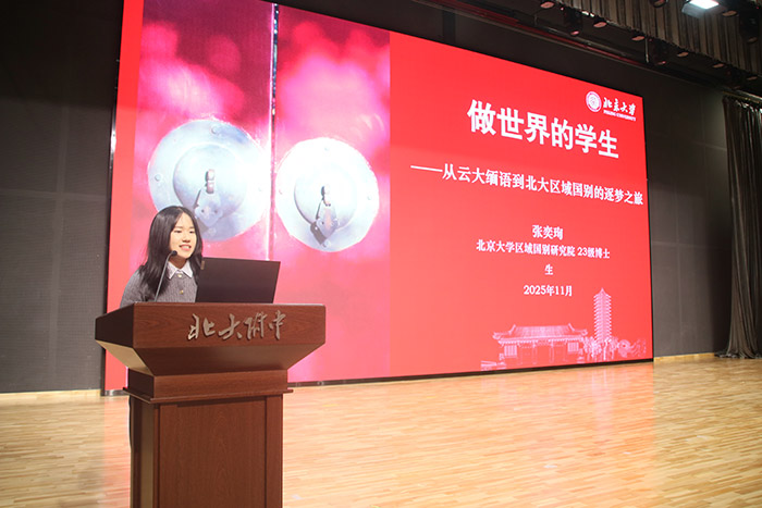 “关注世界,不只是为了看风景,更是为了找到自己在世界中的位置”,北京大学区域国别研究院张奕珣博士以诗意的语言开启了她的分享。从云南大学缅甸语专业到北大区域国别研究,她用自己的求学经历诠释了“做世界的学生”的深刻内涵。通过生动的田野调查案例,她让同学们看到了语言学习与区域研究的独特魅力。