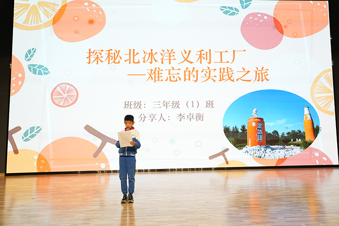 2025年11月10日下午,三年级专场分享会如期举行。同学们带着走进北冰洋义利园区的研学见闻与真实感悟,用童真的表达、鲜活的展示,解锁了一场融合文化探索、科学实践与生活思考的成长盛宴。