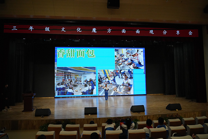 营养健康与文化传承的深度思考让分享会更具价值。同学们结合研学所学,分享营养均衡的膳食建议,从食品制作的细节到老字号的思考,孩子们的分享里满是观察与成长,赢得了现场阵阵掌声。