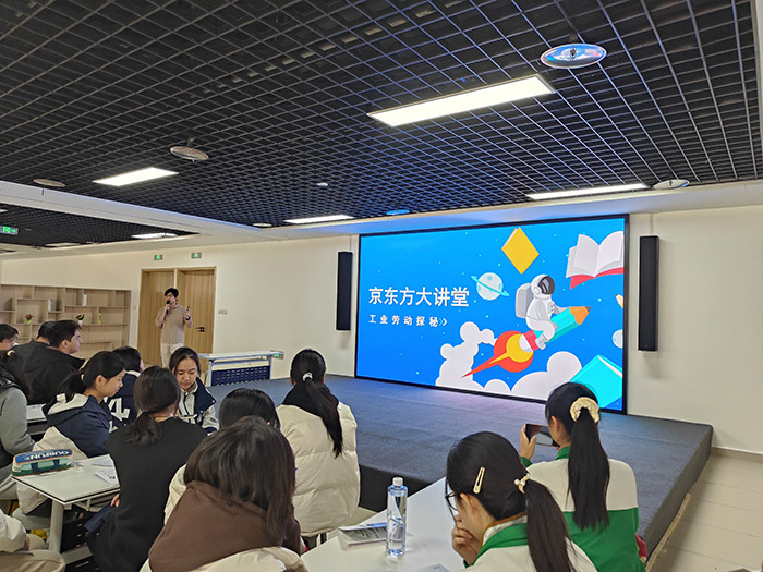 活动的第一站是京东方大讲堂。在现代化的多功能厅内,企业专家为同学们带来了一场深入浅出的科普讲座。大家系统的了解了显示技术的发展历程、前沿应用以及京东方在物联网创新领域取得的卓越成就,深刻感受到“屏”如何作为智慧物联的端口,改变着人类的生活方式。