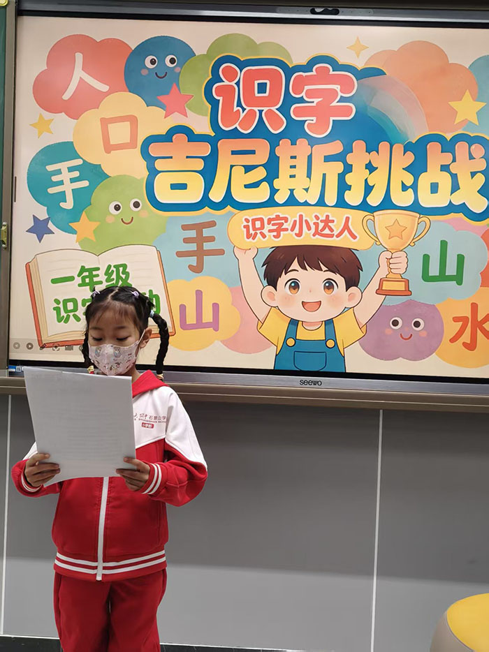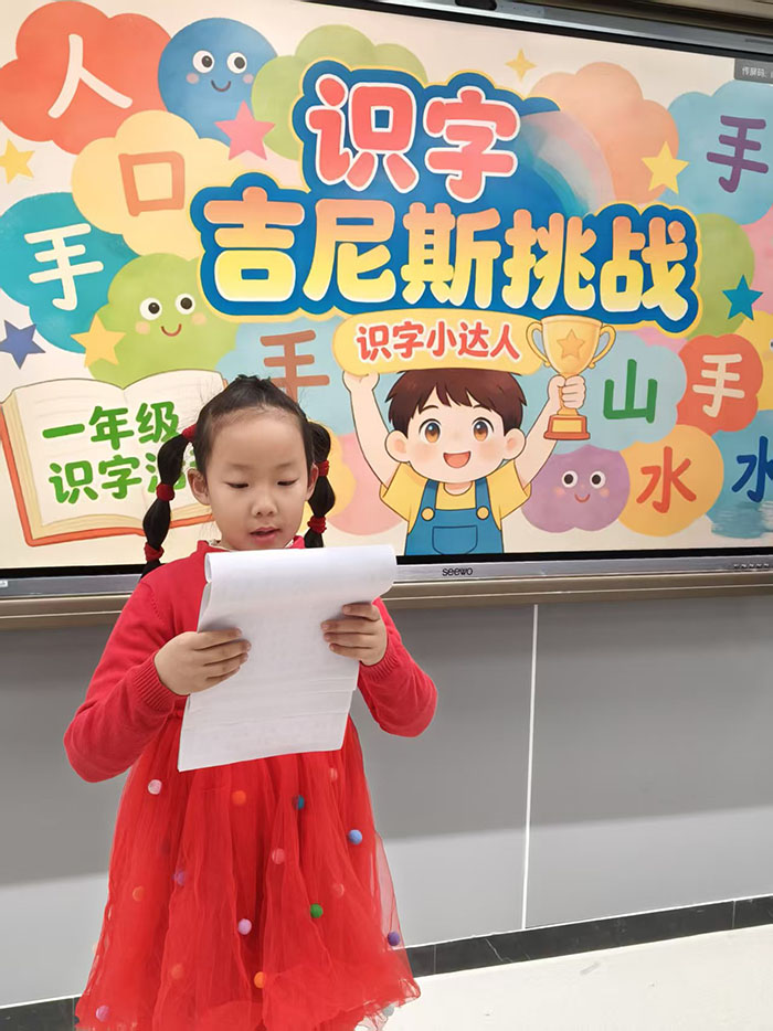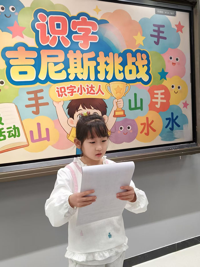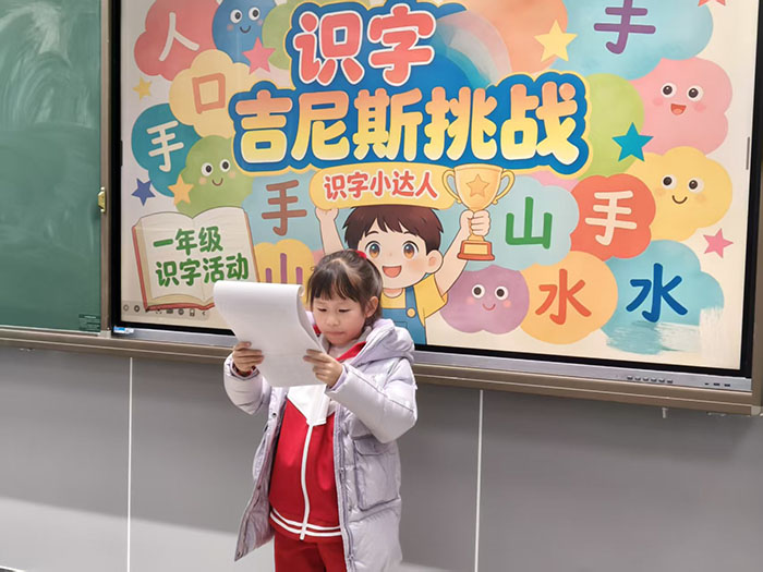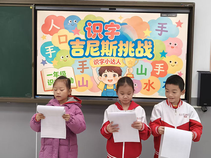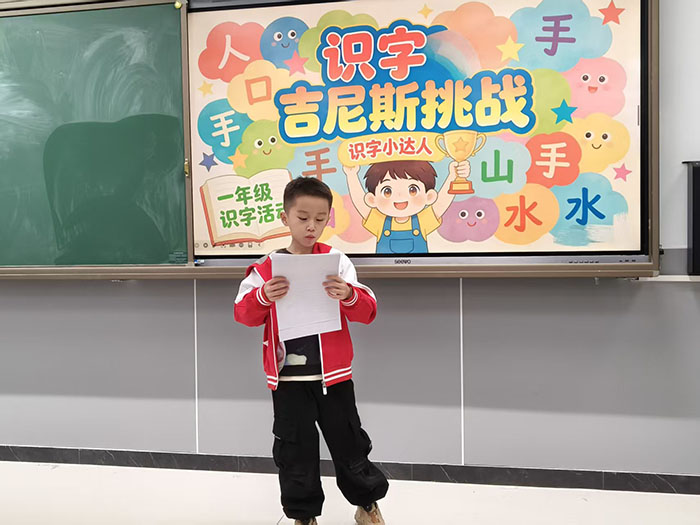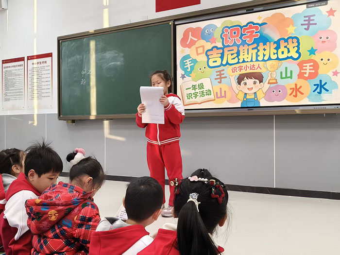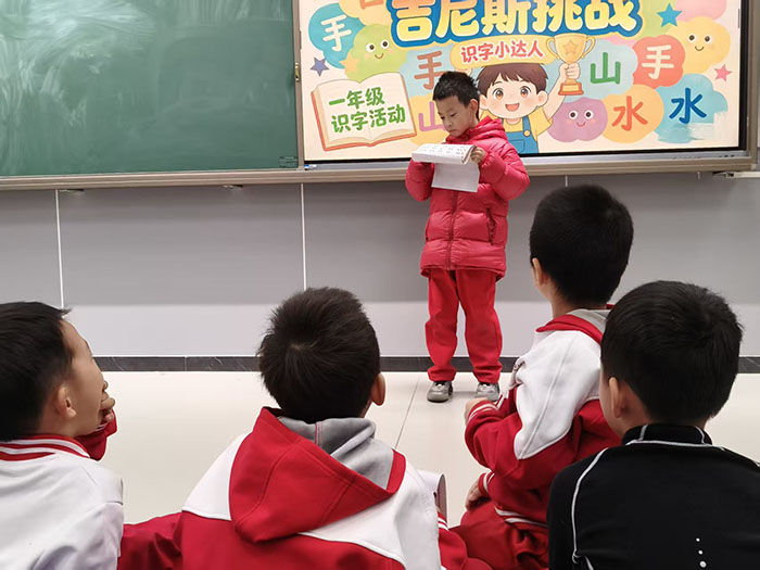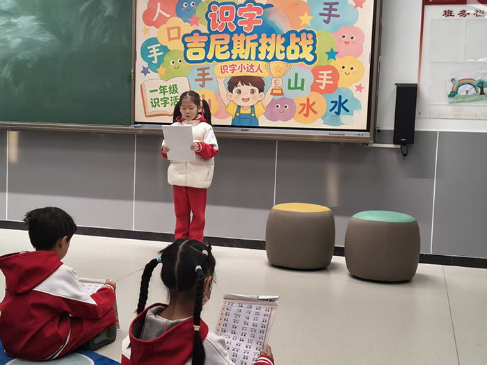 活动现场氛围轻松而愉快,识字小勇士们跃跃欲试,自信满满地走向挑战区。面对老师出示的生字卡片,有的孩子反应迅速,一气呵成,展现出扎实的识字功底;有的孩子遇到稍难的汉字时,能在老师的鼓励下顺利拼读、突破自我。每成功认读一个汉字,孩子们的脸上就绽放出自信的笑容。孩子们在挑战中体验到了识字的乐趣,进一步激发了主动识字、乐于识字的积极性。