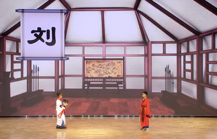 “滚滚长江东逝水,浪花淘尽英雄……”三年级同学表演的三国历史课本剧《草船借箭》圆满落幕。演出中,小演员们用流利的文言对白、精准的鼓点节拍和极具张力的舞台调度,把“三天造箭”的千古智谋鲜活地呈现在大家面前。同学们表示:“为了还原大雾氛围,我们视频、动作和音乐模拟江面晨雾,连曹操‘接着奏乐接着舞’的桥段都是集体创意。”舞台上,曹军“弓箭手”齐射的那一刻,千余支“箭”雨点般落在草船上,观众席爆发出的惊叹声将整场气氛推向高潮。孩子们在真实情境中理解文言、触摸历史,更学会了协作与担当。