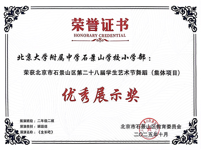 · 在石景山区第二十八届学生艺术节舞蹈(集体项目)获优秀展示奖。