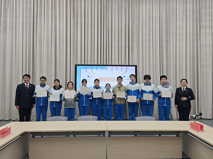 活动最富仪式感的环节,当属“小小公益保护观察员”证书的颁发。当印有烫金大字的红色证书递到手中,同学们感受到的不仅是荣誉,更是一份沉甸甸的社会责任。程烨同学感慨的说:“这份证书是一粒种子,提醒着我们的目光应多一分对社会公共生活的关切与审视。”从公益诉讼制度的详细解读到公益保护观察员的身份赋予,同学们逐步理解:法治并非遥不可及的概念,而是体现在每一次审慎调查、每一轮理性辩论、每一个严谨程序中的国家治理基石。